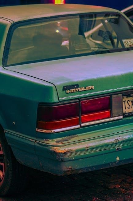 Regular maintenance‚ detailed in the owner’s manual‚ is crucial for the 2013 Chrysler 200’s longevity. Haynes manuals offer guidance for DIY servicing.
